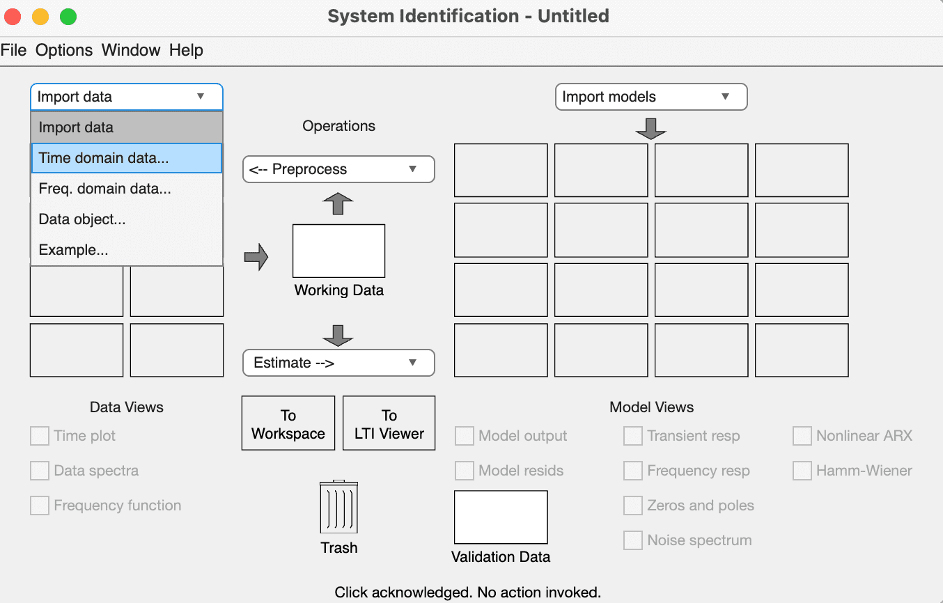 Click Estimate, and the resulting model will be placed in one of the empty slots in System Identification dialog.